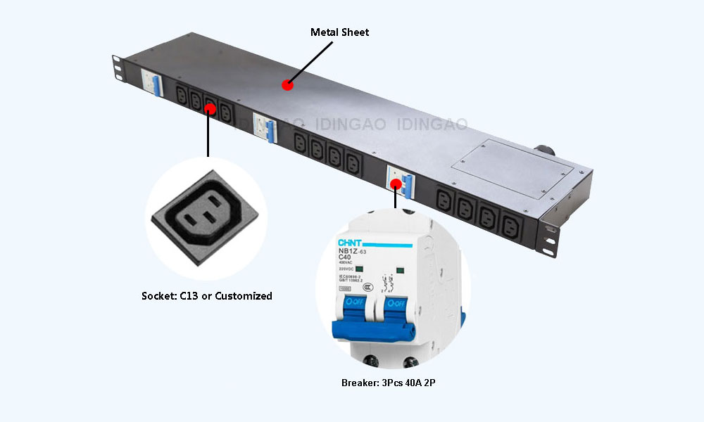12 Ports C13 10A/Port Non-Smart Power Distribution Unit (PDU) |